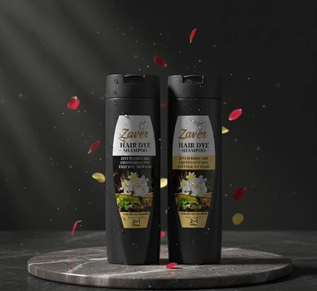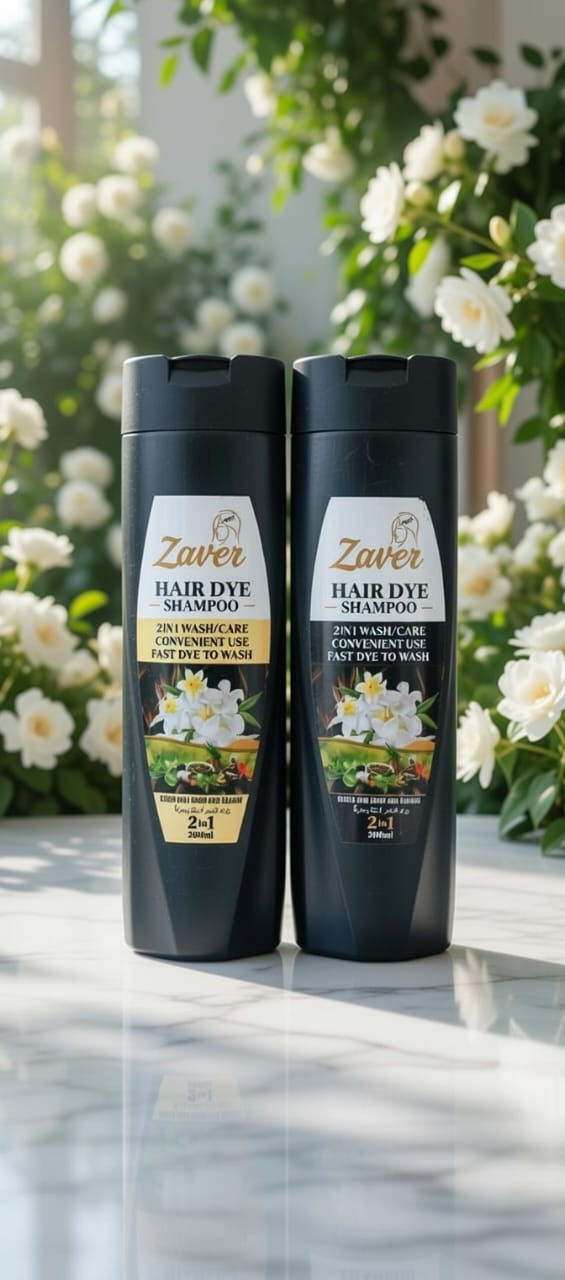 & Free ShippingZaver Hair Dye Colour Shampoo ek advanced herbal formula hai jo baalon ko natural black colour dene ke sath unhein strong, shiny aur healthy bhi banata hai. Ye shampoo specially is tarah design kiya gaya hai ke white aur grey hair ko sirf kuch minutes mein natural black colour mil jaye.